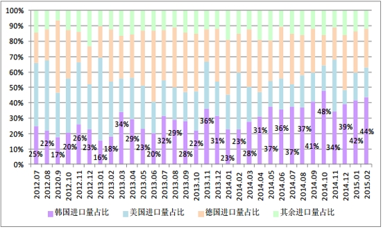 圖2 自韓國進口量占比日漸增加