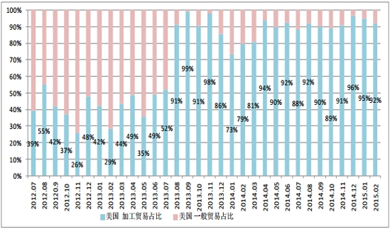 圖3 自美國按加工貿易進口占比