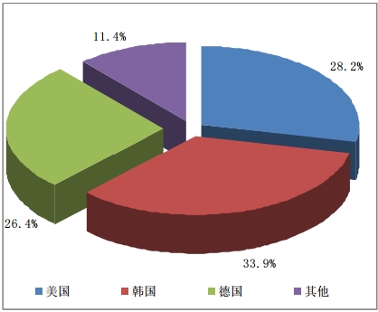 據2月份分國別進口數據顯示,自韓國、美國、德國三國共進口多晶硅6662噸,占總進口量的88.1%,其中從韓國進口量為3286噸,占總進口量的43.5%;從美國進口量為1456噸,占總進口量的19.3%;從德國進口量為1920噸,占總進口量的25.4%;其他地區進口量為896噸,占總量的11.9%。
