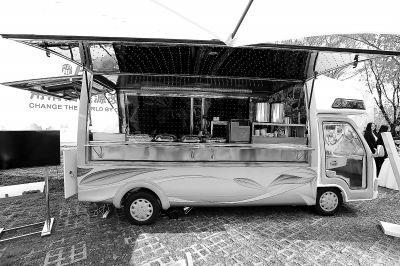 光伏發電的薄膜好似一張黑色的紙,柔性可彎曲、質量輕、能效轉換率高、弱光發電性好。發布會現場展示了全球首款太陽能發電餐車,餐車車身和車頂都“貼”上薄膜發電組件,在正常光照條件下每天可發6度電,可供車內照明,并為冷藏柜、豆漿機、煎鍋、蒸鍋等各類電器供電,絕對的零排放。同時,通過與太陽能組件的結合,餐車設備大多采用直流供電方案,最大限度地降低了能耗。