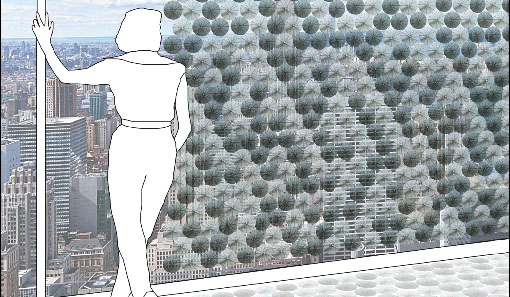 這款智能遮光墻面由Frauhofer與柏林Weissensee藝術學校聯合研發。它由一系列圓形花狀的小元件構成,最初的構造概念是由一位叫Bra Finnsdottir的設計專業學生提供的。每個小元件上都有一片織物,布滿鎳鈦合金線。鎳鈦合金是能記憶形狀的金屬,使它能夠在溫度下降后改變形態,變成設定的形狀;而溫度升高之后,又能恢復原形。
