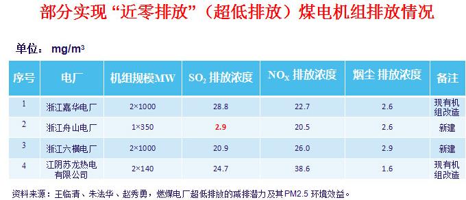燃煤電廠排放的煙塵、二氧化硫和氮氧化物三項大氣污染物(未包含二氧化碳等)與《火電廠大氣污染物排放標準》(GB13223-2011)中規定的燃機要執行特別排放限值相比較,將達到或者低于燃機排放限值(非實際排放)的情況稱為燃煤機組的“近零排放”。