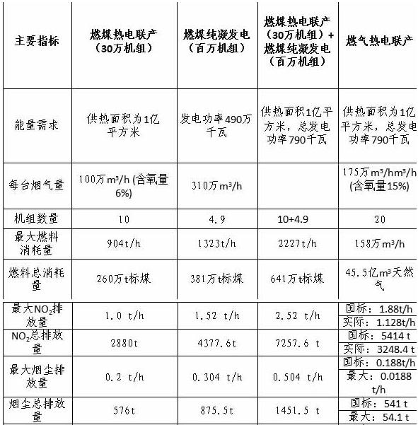 按照污染物排放國標的排放限值計算,燃氣熱電聯產機組的NO2排放(5414t)要低于燃煤機組(7257.6t);