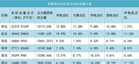 華能作為五大集團裝機容量最高的一家(15149萬千瓦),在東北與南方兩大區域均有超過3000萬千瓦的裝機容量。在內蒙古,華能裝機容量達2282萬千瓦,占了該區總裝機容量近25%的份額。在由廣東、廣西、云南、貴州和海南五省區組成的南方區域中,華能在云南一省便分布了約2138萬千瓦的裝機容量,這一數字是云南全省總裝機容量的31%。