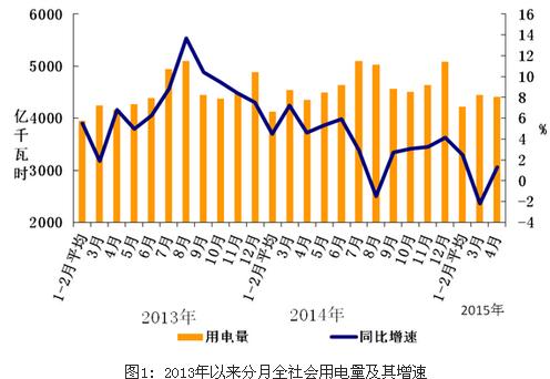 1-4月份,全國電力供需總體寬松。二產用電量持續不振,三產和居民用電量增速明顯提升,全社會用電量小幅增長,增速同比明顯回落。工業用電量同比下降,輕重工業走勢分化。高載能行業用電量增長乏力,建材、鋼鐵用電量同比下降,有色用電量增速回升。發電裝機容量快速增長,大幅高于發電量增速,水電利用小時同比提高,火電和核電利用小時同比顯著下降,電源新增容量高于同期,火電在建規模同比明顯增加。