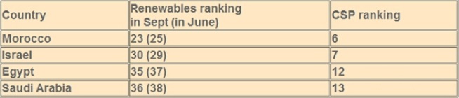 據(jù)安永會(huì)計(jì)師事務(wù)所(Ernst&Young)發(fā)布的全球最具吸引力的可再生能源市場(chǎng)最新排名顯示,盡管排名仍舊在10名以外,但摩洛哥、埃及和沙特阿拉伯的排名均略有提升。但具體到光熱發(fā)電領(lǐng)域,以上三國(guó)和以色列均位居全球最具吸引力的光熱發(fā)電市場(chǎng)的前13名以內(nèi)。