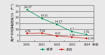 圖2 2010~2014年城市、農村用戶平均停電時間趨勢