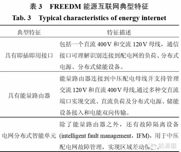 該項目所提出的能源互聯網主要面向高滲透率分布式電源并網,具有三個典型特征,如表3所示。