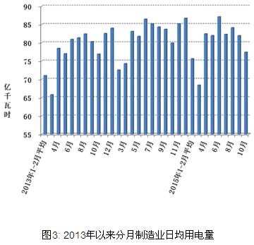 1-10月份,全國制造業用電量24232億千瓦時,同比下降0.9%,增速同比降低5.7個百分點。10月份,全國制造業用電量2400億千瓦時,同比下降3.0%;制造業日均用電量77.4億千瓦時/天,比上年同期減少2.5億千瓦時/天,比上月減少4.5億千瓦時/天。