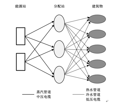 圖2 集中布置型系統能源輸送網絡示意圖