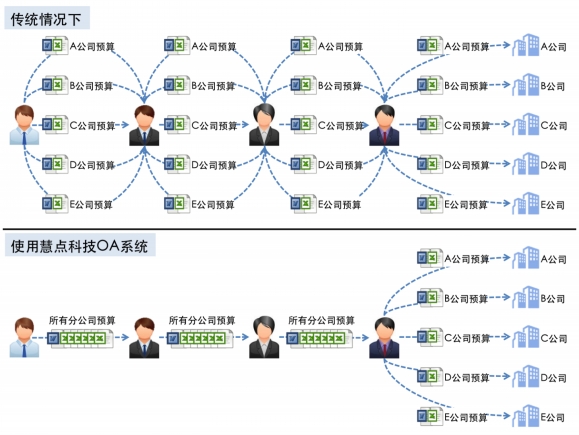 集團(tuán)型企業(yè)在制定完年度預(yù)算后,需要將各分子公司的預(yù)算以正式文件形式分別下發(fā)。由于各分子公司的預(yù)算批復(fù)文件不同、且互不公開,因此,在傳統(tǒng)方式下,集團(tuán)財務(wù)部在提起發(fā)文審批時,需要根據(jù)二級單位數(shù)量起草十幾份甚至幾十份文件,領(lǐng)導(dǎo)需要進(jìn)行數(shù)十次的審批,文書也需要進(jìn)行相應(yīng)次數(shù)的排版下發(fā)工作。慧點科技OA系統(tǒng)的“背靠背發(fā)文”功能可以幫助用戶實現(xiàn)一次分發(fā)、分別送達(dá)的業(yè)務(wù)需要,避免分次發(fā)送的重復(fù)性勞動和漏發(fā)錯發(fā)等工作失誤。