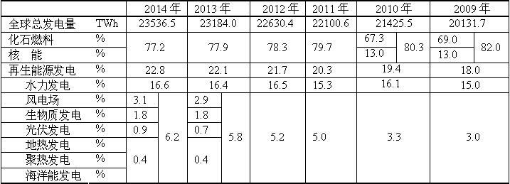 2014年,可再生能源在世界各個區域都有顯著增長,約59%的全球凈電力新增裝機來自可再生能源。風電、太陽能光伏發電和水電在其中占絕對優勢。截止到2014年底,全球發電裝機中可再生能源約占27.7%,足以滿足全球電力需求的22.8%左右。