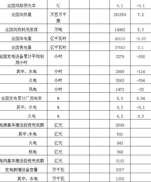 1-10月,全國發電設備累計平均利用小時為3279小時,同比減少268小時。其中,水電設備平均利用小時為2989小時,減少114小時;火電設備平均利用小時為3563小時,減少304小時。