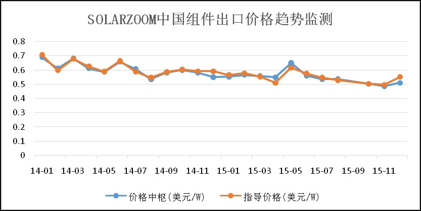 中國光伏組件近幾個月以來的出口增速提升,主要由于印度、菲律賓、智利等新興市場的高速增長所致,且占中國的組件出口的份額在不斷提升。2015年第4季度,中國組件出口印度、菲律賓、泰國、智利的總金額與去年同期相比分別增長了167%、146%、303%和261%,而4季度這四個國家占中國組件出口全球市場的份額(以總金額計,下同)分別從去年同期的5%、3%、2%、1%上升到13%、7%、8%、5%,合計占33%。出口價格方面,2015年全球組件出口價格中樞繼續維持2014年以來的持續下降趨勢,但由于搶裝因素和新興市場需求,降幅已經趨緩。
