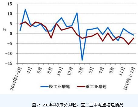 二、工業用電量增長持續不振,輕、重工業用電量均負增長