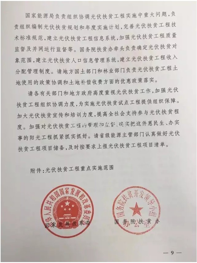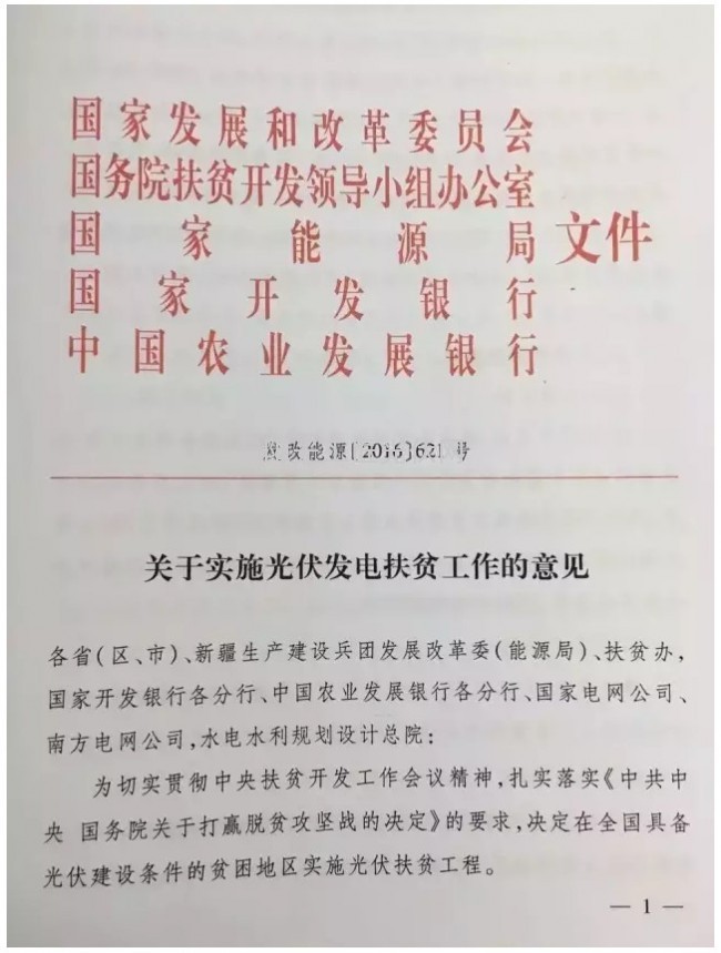 日前,國家發改委、國務院扶貧開發領導小組辦公室、國家能源局、國開行以及中國農業發展銀行聯合下發關于光伏發電扶貧工作的意見,并劃定16省471縣的重點實施范圍。重點內容如下: