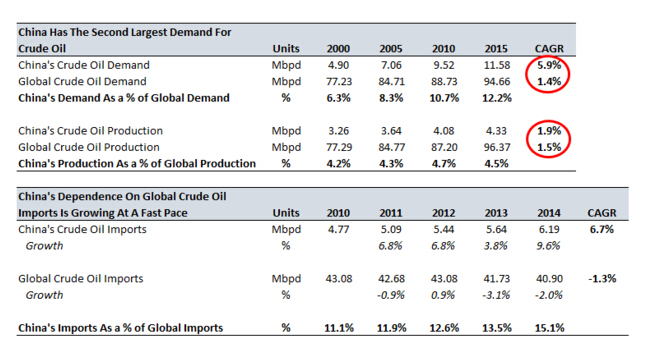 在2015年,中國(guó)的石油生產(chǎn)量為430萬桶/天,然而,同期該國(guó)石油需求量為1160萬桶/天。這種供需不匹配造成了中國(guó)在過去15年間的石油需求增長(zhǎng)率為6%左右,然而與此同時(shí)石油生產(chǎn)量增長(zhǎng)率僅為2%。