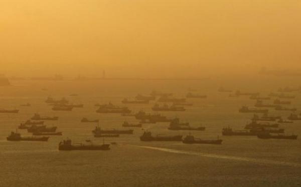 新加坡海域密密麻麻的油輪,其中大部分都處于靜止狀態