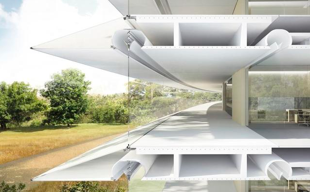 太空船總部使用了大量空心混凝土板,這些板材可以讓建筑物自行“呼吸”。國際建筑與設計公司Foster+Partners的高管斯特凡˙貝林(StefanBehling)稱:“這種自通風設計可以極大地降低對傳統冷卻的需求。”