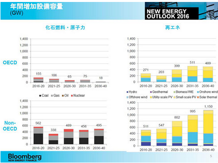 調查公司彭博新能源財經(BNEF)6月13日發布了能源相關長期預測的2016年度版2016年新能源前景(New Energy Outlook 2016)。