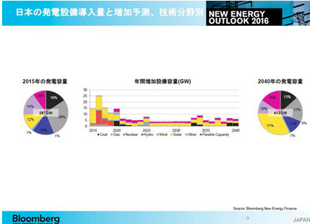 日本全部電源的發電容量,到2040年將由2015年的287GW增至413GW。