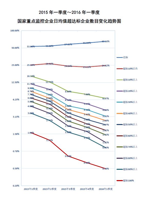 二是通過加強監(jiān)管,嚴(yán)重超標(biāo)企業(yè)逐步減少,去年四季度通報嚴(yán)重超標(biāo)的有130多家,到今年一季度就剩下95家,減少了26.92%。