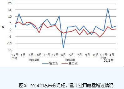 1-5月份,全國工業(yè)用電量15839億千瓦時,同比增長0.4%,增速比上年同期提高1.1個百分點,占全社會用電量的比重為69.4%,對全社會用電量增長的貢獻率為9.4%。其中,輕工業(yè)用電量為2668億千瓦時,同比增長3.4%,增速比上年同期提高1.4個百分點;重工業(yè)用電量為13171億千瓦時,同比下降0.2%,增速比上年同期提高1.1個百分點。
