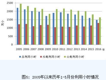 1-5月份,全國發(fā)電設備累計平均利用小時1484小時,同比降低116小時。