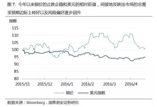 另一方面美元的走弱反映了市場避險情緒下降的態勢。而美元本身作為一類主要的避險資產,避險情緒升溫刺激下的需求能在一定程度上推升美元幣值。從年初至今年四月份,美元則是累計大幅貶值達7%,對需求預期的改善和風險偏好的上升形成了較好的支撐。