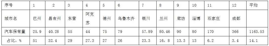 表二、12個城市CNG汽車與當地汽車保有量的占比排序表
