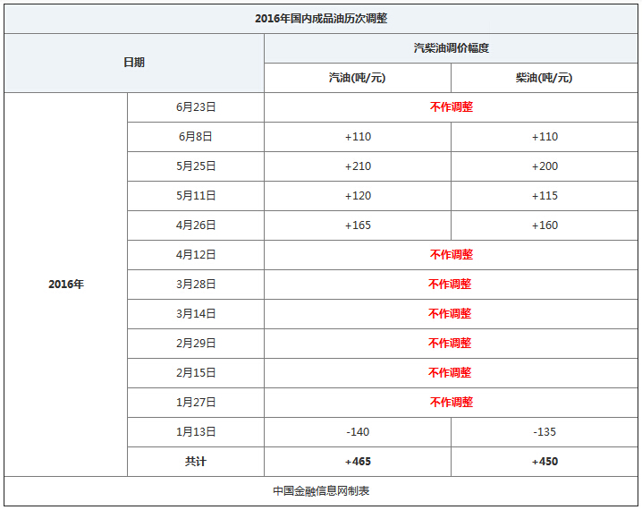 6月8日,國家發改委發布通知指出,根據近期國際市場油價變化情況,按照現行成品油價格形成機制,自2016年6月8日24時起,國內汽、柴油價格(標準品)每噸均提高110元。