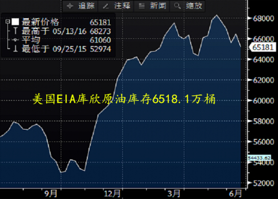 (圖2:美國EIA俄克拉荷馬州庫欣原油庫存數量圖,最新數量為6518.1萬桶)