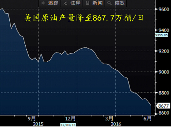 (圖3:美國國內原油產量變化圖,最新產量為867.7萬桶/日)