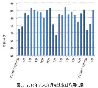 1-4月份,全國制造業用電量9225億千瓦時,同比下降0.9%,增速比上年同期低0.7個百分點。4月份,全國制造業用電量2557億千瓦時,同比增長0.8%;制造業日均用電量85.2億千瓦時/天,分別比上年同期和上月增加0.7億千瓦時/天和9.2億千瓦時/天。