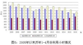 1-4月份,全國發電設備累計平均利用小時1180小時,同比降低97小時。