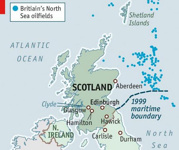 2014年的蘇格蘭公投,從最實際的角度講,是蘇格蘭和英國政府石油利益的沖突,蘇格蘭認為北海石油應該屬于自己。北海油田(North Sea Oil Field)是歐洲大陸西北部和大不列顛島之間的北海海底油田,沿岸國英國獲51平方公里的面積,20世紀70年代開始產油,80年代起大規模開采,使英國成為世界重要產油國之一。目前,北海油田的收入歸英國中央政府統收統分,如果蘇格蘭獨立,以現有的漁業功課線為疆土,蘇格蘭將獲得95%的油田和約60%的氣田,使英國遭受巨大損失。