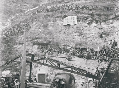 在四川威遠縣曹家山建設(shè)指揮部,為不占良田、不拆民房,6000多名會戰(zhàn)人員吃住在窩棚,炸山取石,用10天時間,沿山坡修建起幾十棟用片石筑起的指揮機關(guān)、千人大禮堂、三層樓招待所,并修建一條300多級的石階通往山頂,定名為“紅村”。