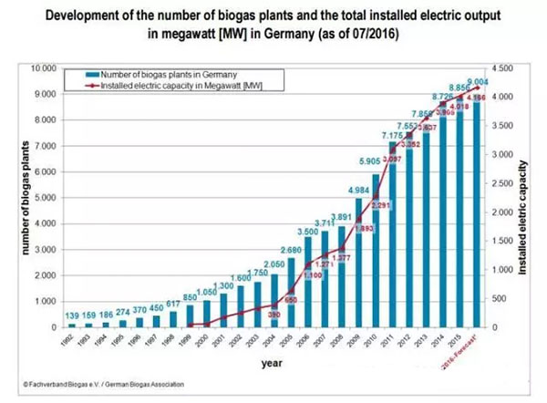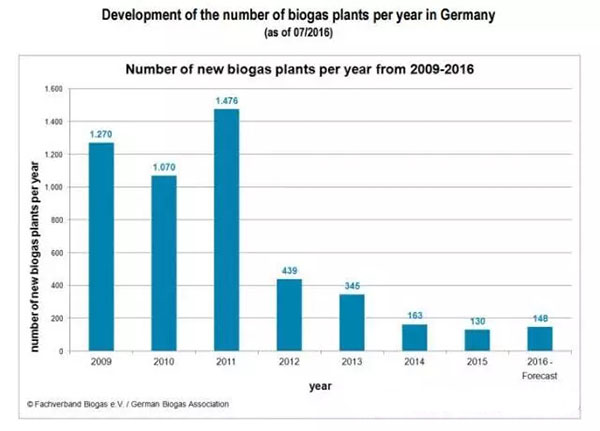 與其他國家的沼氣行業(yè)發(fā)展相比的話,這個(gè)數(shù)字確實(shí)令人印象深刻。德國在2000年通過了可再生能源法(EGG),的最小年增幅,德國沼氣協(xié)會(huì)表示,去年發(fā)布的數(shù)據(jù)“整體建設(shè)的步伐是有點(diǎn)令人失望。”