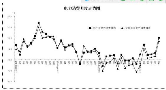 7月份,全社會用電同比增長8.2%,增速比6月份加快5.6個百分點。1-7月份,全社會用電增長3.6%,比1-6月份加快0.9個百分點。