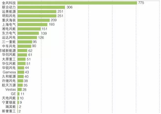 2015年,中國風電有新增裝機的整機制造商共26家,新增安裝風電機組16740臺,新增裝機容量為30753MW,同比增長32.6%。