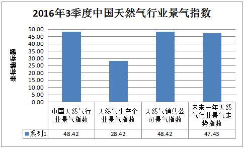 2016年3季度銷售企業(yè)景氣指數(shù)為48.42,國(guó)內(nèi)天然氣銷售公司運(yùn)營(yíng)相對(duì)平穩(wěn),與2016年2季度的53.22相比波動(dòng)不大。