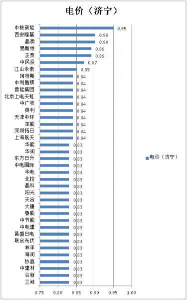 現(xiàn)場的48家企業(yè)只有38家參與了濟寧項目的投標,其中,22家報價0.83元/KWh,8家報價0.84元/KWh。