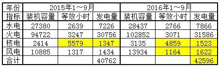 我們不妨來大致推算一下:不考慮水電、火電、風電和核電之外的其他電源,水電和火電的發(fā)電量合計存在3.8%的增長,風電和核電的發(fā)電量合計則相應地有13%以上的增長,但是風電和核電裝機容量提高了28%,因此設備平均利用小時數(shù)約有12%~13%的下降幅度。