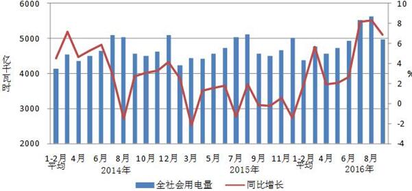 1-9月份,全國全社會(huì)用電量43885億千瓦時(shí),同比增長4.5%,增速比上年同期提高3.7個(gè)百分點(diǎn)。