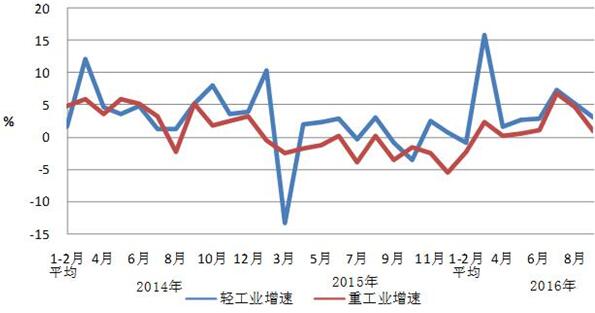 圖2: 2014年以來分月輕、重工業(yè)用電量增速情況