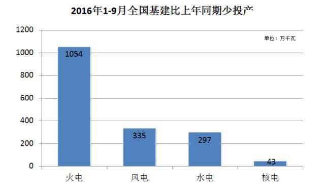 1-9月份,全國(guó)基建新增發(fā)電生產(chǎn)能力7270萬(wàn)千瓦,比上年同期少投產(chǎn)159萬(wàn)千瓦。其中,水電788萬(wàn)千瓦、火電2901萬(wàn)千瓦、核電503萬(wàn)千瓦、風(fēng)電824萬(wàn)千瓦,分別比上年同期少投產(chǎn)297、1054、43和335萬(wàn)千瓦。