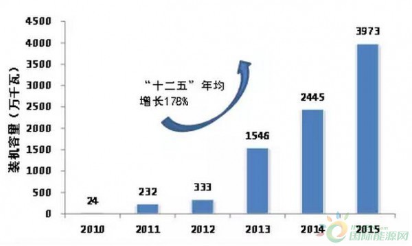“十二五”期間,國家電網調度范圍內太陽能發電裝機容量年均增長178%,發電量年均增長220%。截至2016年6月底,光伏裝機容量達到6051萬千瓦,占比4.7%,同比增長96.6%;1~6月累計發電量271.45億千瓦時,同比增長51.3%。
