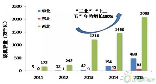 “十二五”期間,“三北”地區(不含蒙西,下同)太陽能發電裝機年均增長190%。截至2015年,“三北”地區太陽能發電裝機達到2654萬千瓦,占公司經營區的74%。截至2016年7月底,“三北”地區太陽能發電裝機容量4251萬千瓦,同比增長97%。