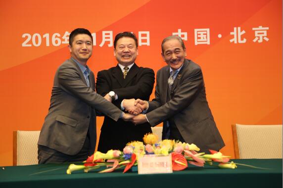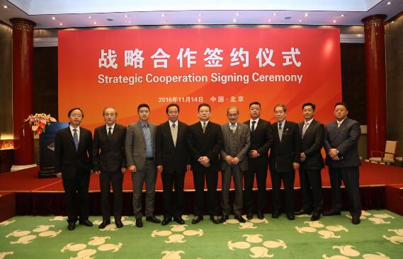11月14日下午,Continental Clean Energy INC,中廣核太陽能開發有限公司,聯合國創(北京)投資管理有限公司戰略合作簽約儀式在釣魚臺國賓館舉行。中廣核太陽能開發有限公司投資部部長曹長森先生、日本大陸能源控股集團董事長牧資章先生、發改委新產業投資中心王濤主任、聯合國創(北京)投資管理公司董事長馬建校先生,北京君輝新能源科技有限公司董事蕭紅明先生,日本大陸能源控股集團董事副社長松坂工先生、佐佐木良太先生,出席了簽約儀式。