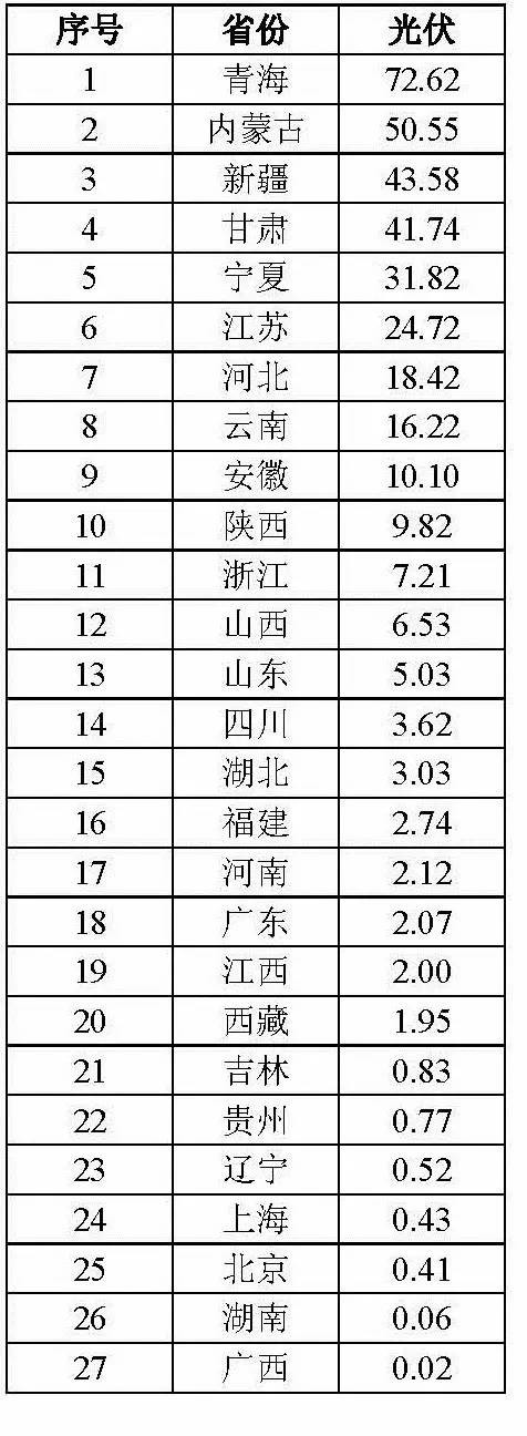 根據國家統計局數據,各省發電量中的非水可再生能源占比情況如表1所示。